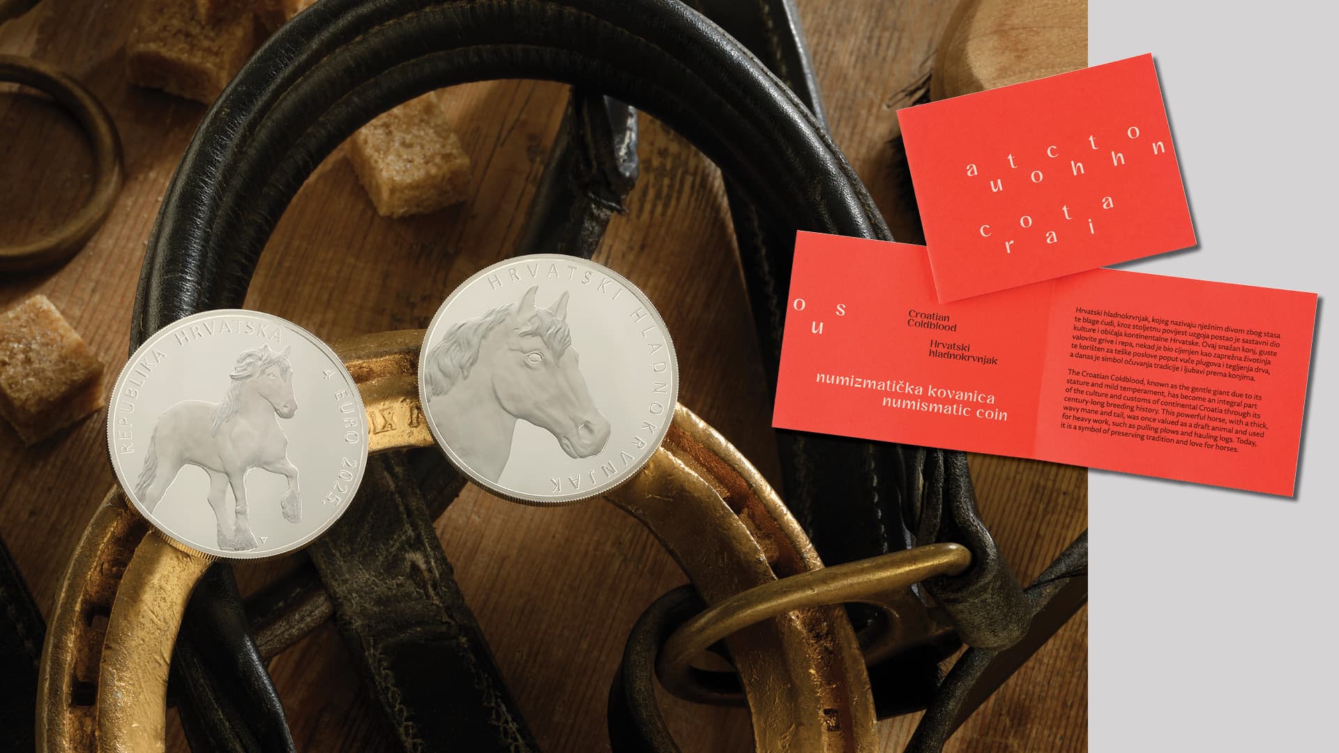 Hrvatska narodna banka izdaje zlatne i srebrne numizmatičke kovanice "Hrvatski hladnokrvnjak", u sklopu serije numizmatičkih kovanica "Autohtona Hrvatska", s prigodnim motivima kojima se predstavlja izvorna pasmina konja hrvatskoga hladnokrvnjaka, s uzgojnim područjem na gotovo cijelom području Republike Hrvatske. Konj hrvatski hladnokrvnjak svrstava se u važan dio prirodne, kulturne i gospodarske baštine Republike Hrvatske. Zlatne numizmatičke kovanice izdaju se u apoenima od 100 i 10 eura, a srebrne numizmatičke kovanice izdaju se u apoenima od 8 i 4 eura. Zlatna numizmatička kovanica u apoenu od 100 eura i srebrna numizmatička kovanica od 8 eura izdaju se u boji.