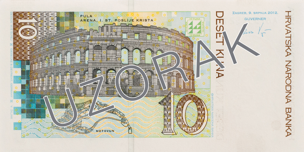 The commemorative 10 kuna banknote was issued to mark the 10th anniversary of the kuna, on 30 May 2004.
