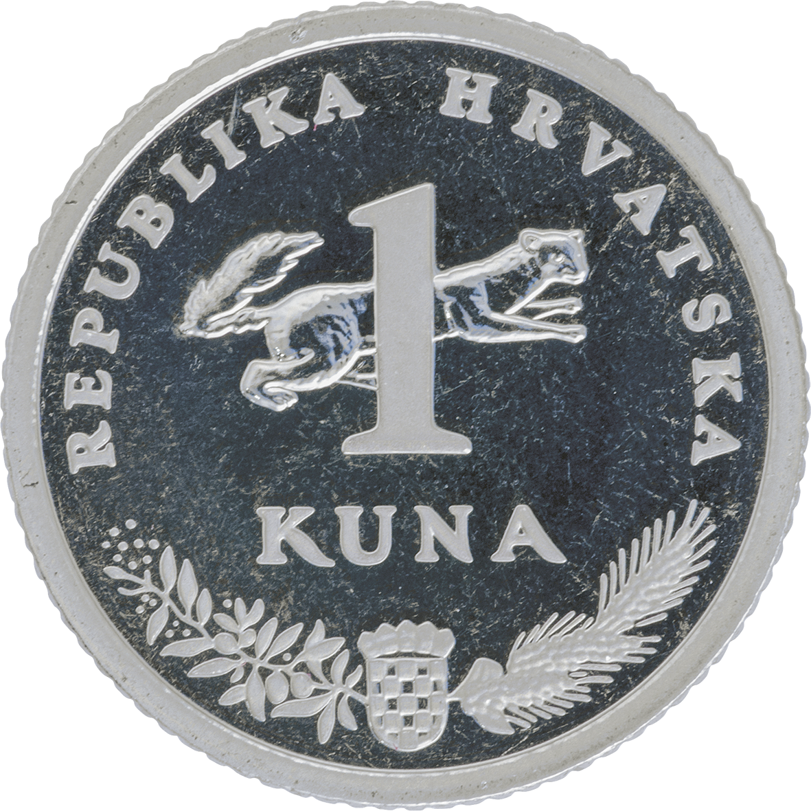 Motiv na licu: U središnjem dijelu brojčana oznaka i naziv novčane jedinice "1 KUNA", a u pozadini prikaz kune zlatice u trku nadesno, zvijeri iz porodice kuna, skupocjena krzna. U gornjem polukrugu, uz rub, natpis "REPUBLIKA HRVATSKA". Uz donji rub, u središnjem dijelu, prikaz grba Republike Hrvatske. Lijevo od grba, polukružno uz rub, stilizirani je prikaz maslinove grančice s plodovima, a desno, također polukružno uz rub, stilizirani je prikaz pšeničnoga klasja.