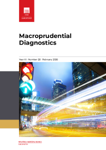 The publication Macroprudential Diagnostics covers summarised results of regular analyses of systemic vulnerabilities and risks which could jeopardise the stability of the domestic financial system. The aim of the publication is to inform the public of the most recent and most important developments affecting the financial stability of the Republic of Croatia.