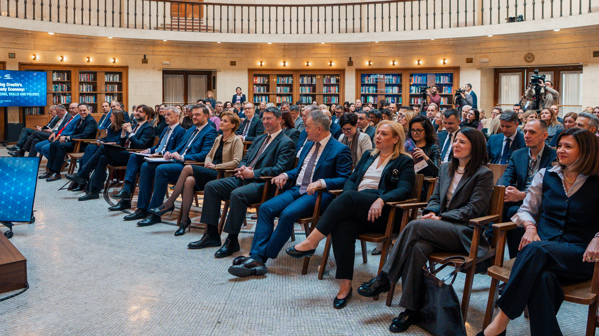 Hrvatska narodna banka (HNB) i Grupa Europske investicijske banke (EIB) danas su organizirale konferenciju „Oblikovanje hrvatskog gospodarstva spremnog za umjetnu inteligenciju: financije, vještine i politike” (engl. Shaping Croatia’s AI-Ready Economy: Financing, Skills and Policies). U Okrugloj dvorani HNB-a uvodne govore održali su Tomislav Ćorić, potpredsjednik Vlade i ministar financija, Boris Vujčić, guverner Hrvatske narodne banke i Marko Primorac, potpredsjednik Europske investicijske banke.