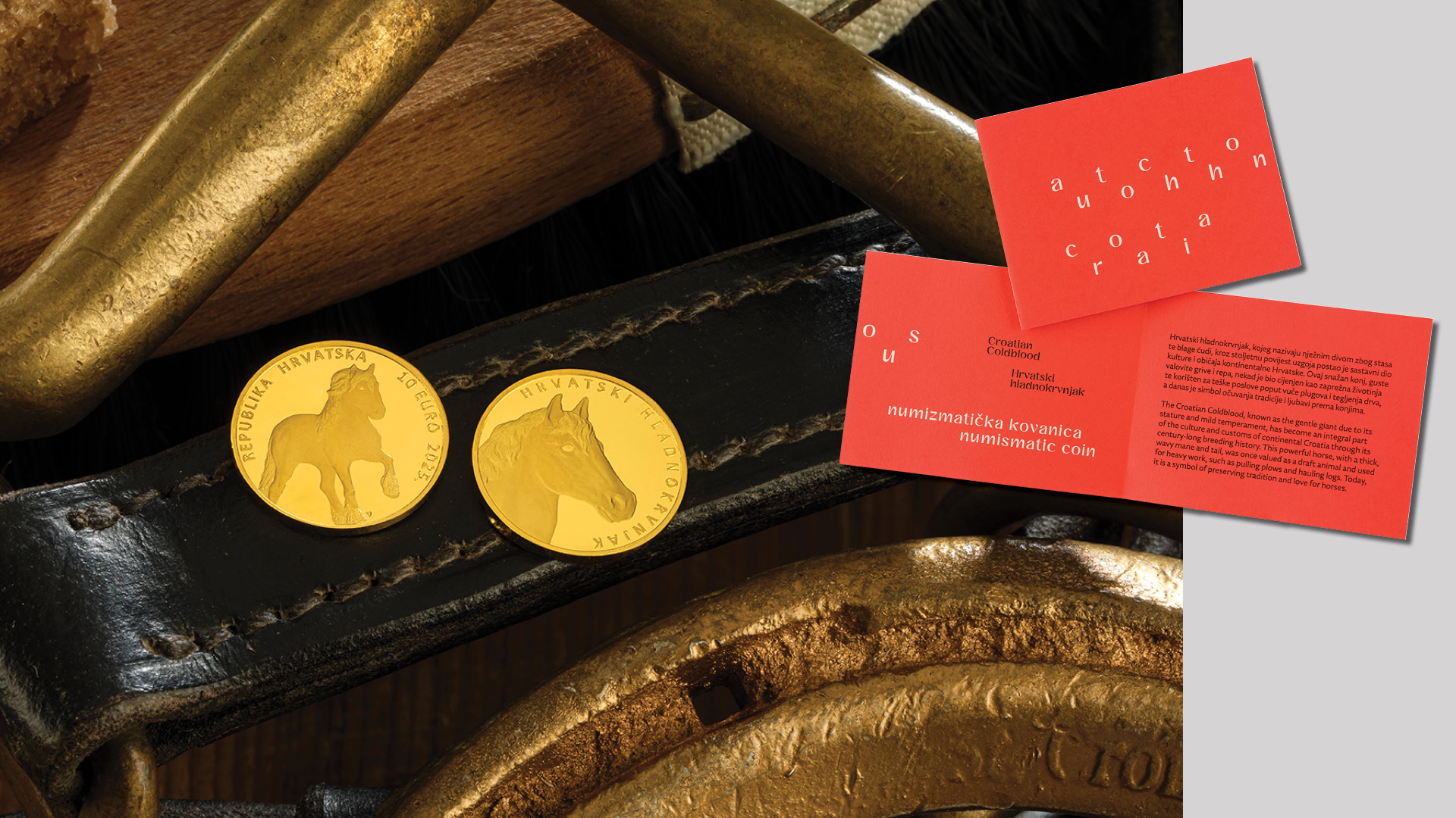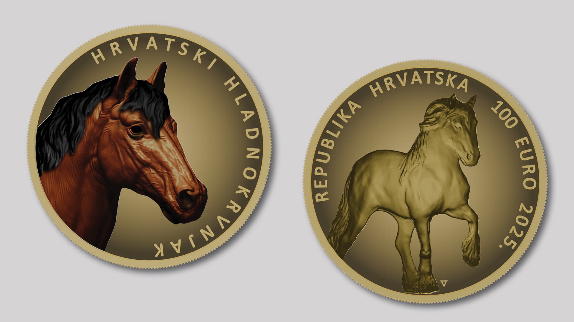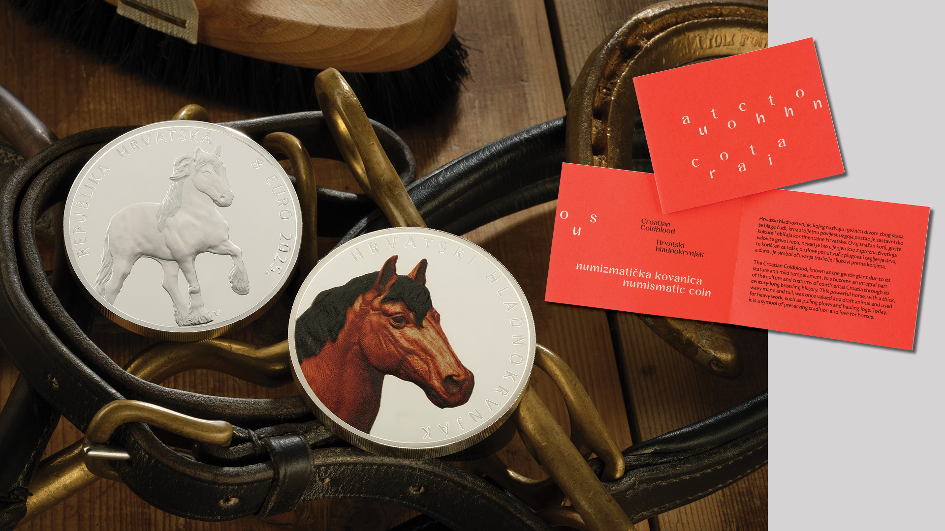 Hrvatska narodna banka izdaje zlatne i srebrne numizmatičke kovanice "Hrvatski hladnokrvnjak", u sklopu serije numizmatičkih kovanica "Autohtona Hrvatska", s prigodnim motivima kojima se predstavlja izvorna pasmina konja hrvatskoga hladnokrvnjaka, s uzgojnim područjem na gotovo cijelom području Republike Hrvatske. Konj hrvatski hladnokrvnjak svrstava se u važan dio prirodne, kulturne i gospodarske baštine Republike Hrvatske. Zlatne numizmatičke kovanice izdaju se u apoenima od 100 i 10 eura, a srebrne numizmatičke kovanice izdaju se u apoenima od 8 i 4 eura. Zlatna numizmatička kovanica u apoenu od 100 eura i srebrna numizmatička kovanica od 8 eura izdaju se u boji.