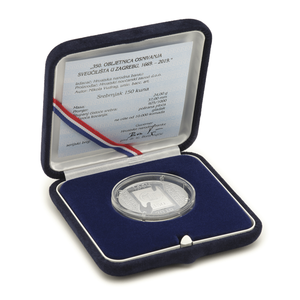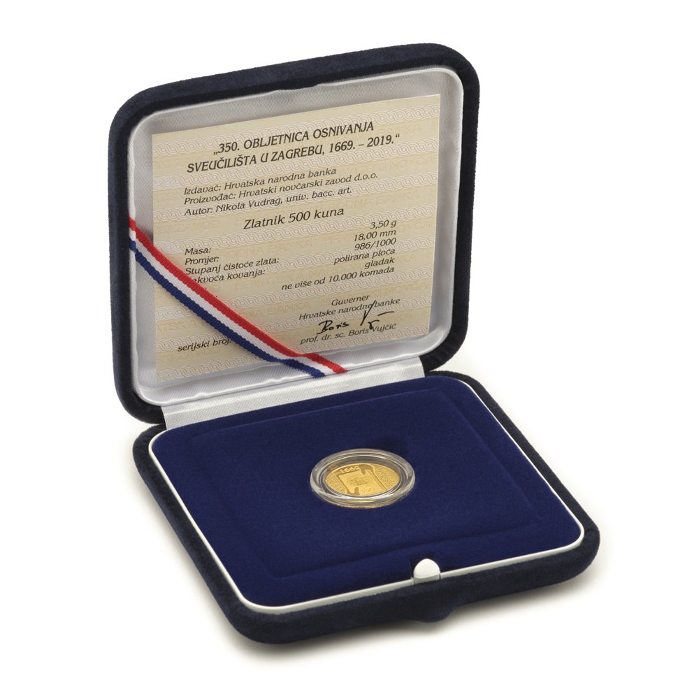 Hrvatska narodna banka izdala je prigodni zlatni i srebrni kovani novac, kao i njihov numizmatički komplet, u povodu 350. obljetnice osnivanja Sveučilišta u Zagrebu (1669. – 2019.), povijesnoga, političkog, znanstvenog i kulturnog događaja važnog za Republiku Hrvatsku.
